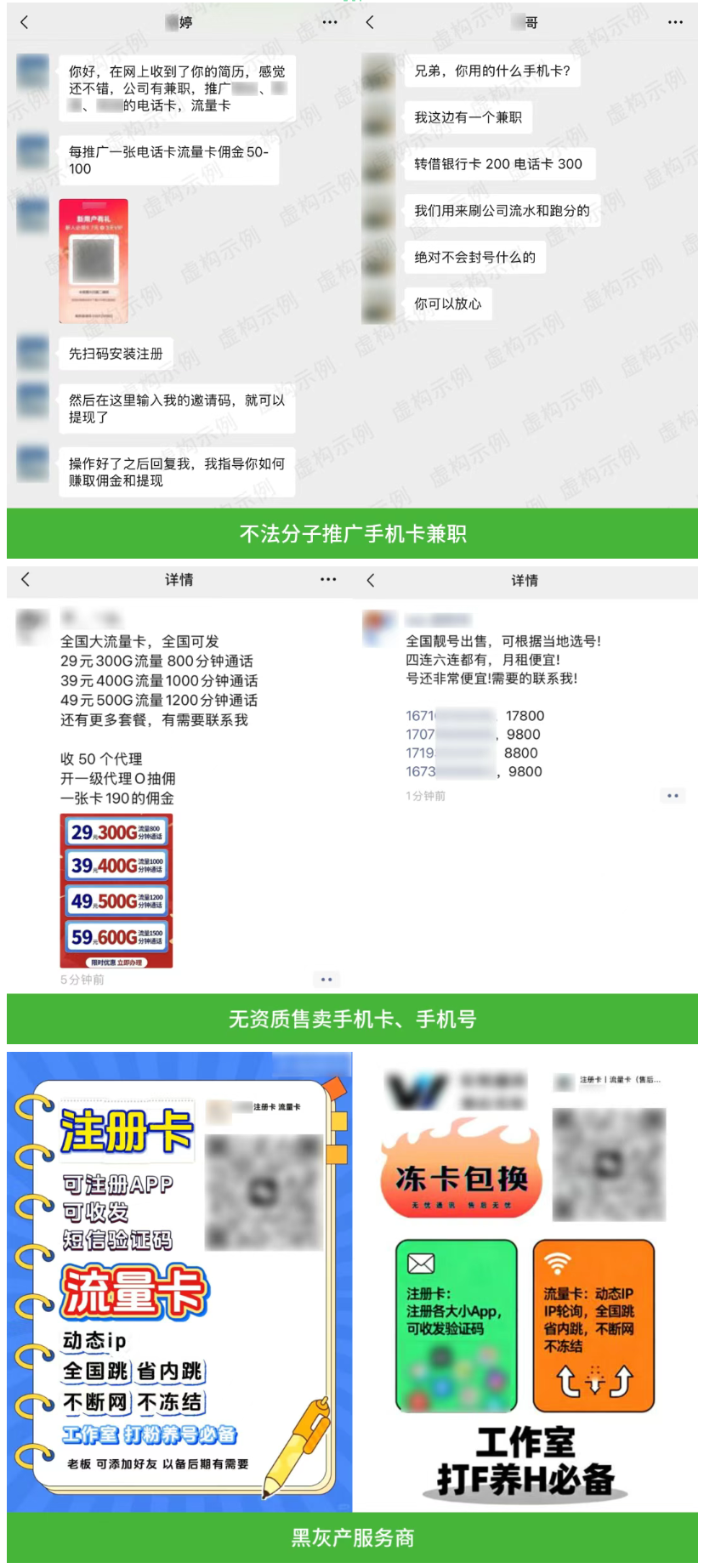 近日,微信安全中心发布公告称,非法出售、出租、出借手机卡涉嫌违法犯罪。微信持续关注并打破平台上手机卡和手机号码的销售。近日,微信安全中心接到用户投诉,发现部分用户被“高成本兼职”、“赚快钱”等词所欺骗,参与买卖手机卡、手机号码,因缺乏法律意识而成为犯罪同谋。为保护用户合法权益,微信团队将继续加强对出售手机卡、手机号码的打击力度。对于前述违法行为,经核实确认后,微信安全中心将根据国家相关法律法规及平台协议、政策等规定,根据《腾讯微信软件许可及服务协议》和《微信个人账户使用协议》,根据违规行为的严重程度,对相关账户进行分级处罚。对于屡次违规的,处罚力度将会加大。部分违规示例▼微信安全中心提醒用户,实名制卡仅限个人使用。严禁出租、出借、出售。不要犯一点小错误,给自己带来不必要的法律风险。确保您的个人信息安全,不轻易泄露或泄露给他人,防止不法分子利用您的个人信息进行电信诈骗等非法活动。如果您需要办理手机卡,一定要到有官方许可和合法经营资质的正规营业厅或者官方网上渠道。南方网广东考察记者 李洁婵 来源:“微信安全中心”微信公众号