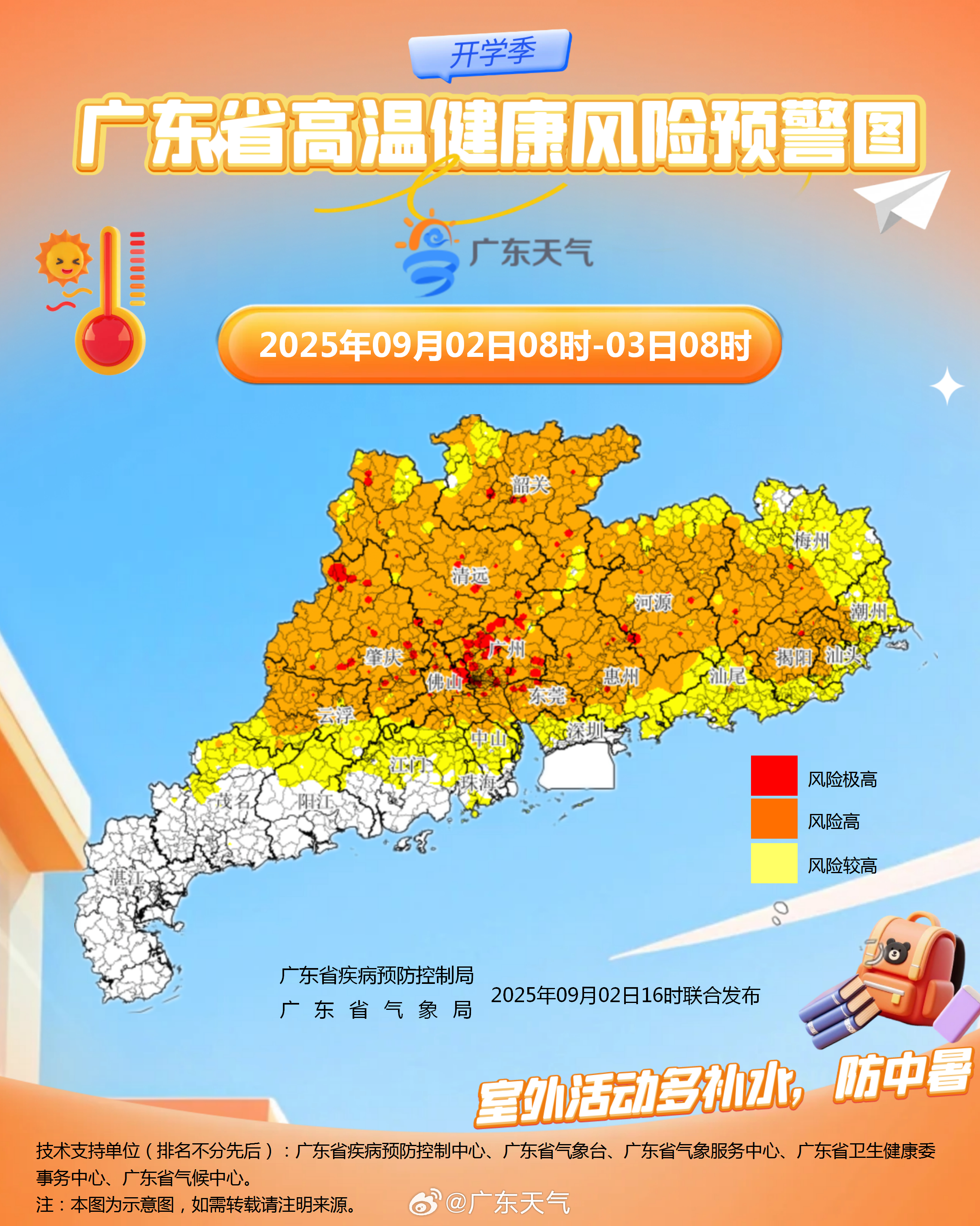 根据@Gangdong的天气,9月2日16:00,广东省疾病控制与预防局和广东省气象局共同发布了广东的高温,面临健康风险的风险。在接下来的三天中,广东将伴随着高温和暴风雨,高温健康风险将增加。您似乎要去“火焰山”将山分开! It is expected that on September 2, with the exception of Western Guangdong cities and counties, most areas of the province of Guangdong will have high high -temperature health temperatures, which are high -temperature temperature temperatures in the central and northern Pearl River Delta and Northern Guangdong cities and counties, as well as Jieyang and Shantau local health risk is NASA zhaoqing, foshhan and fosho 高的。从9月3日至4日,广东中部和北部省的高温健康风险继续他的风险极高的地区主要集中在中部珍珠河三角洲的城市和县。 @Guangdong的时间提醒,这是学校季节的开始,防止热量并冷却钥匙!老师,学生和父母应试图避免在下午的高温下进行长时间的外部活动,多喝水,准备冷却产品,并照顾热喷雾“偷袭攻击”。具体的预测如下:在2 -2中,广东西部和北部的城市和县都浑浊,阵亡(雷声)阵雨和当地风暴,而其他城市和县则多云,包括当地风暴。最高温度:南部海湾和县的31-33℃,其他城市和县的34-37℃。 3日,珍珠河三角洲和广东西部的海岸和县的城市多云加州(雷声)阵雨。最高温度:梅伊斯州和南部城市和县的30-33℃,其他城市和县的34-37℃。第四次,广东东部,海乌安和梅伊斯州的城市和县都多云,中度(雷声)雨和当地的雨水和当地的雨水,而其他城市和县则多云,散布着(雷电)阵雨,当地阵雨或重量大雨。最高温度:南部城市和县的31-34℃,其他城市和县的34-37℃。 5日,珍珠河三角洲,广东西部,海乌安和肖古恩城市和县都多云,中度(雷声)雨水和当地的雨水和当地的雨水,而其他城市和县则多云,阵阵阵阵阵阵阵阵阵阵阵阵阵雨和当地的大雨。最高温度:南部城市和县的30-33℃,其他城市和县的34-37℃。南部网络,广东学习记者陈·海明(Chen Haimin)
